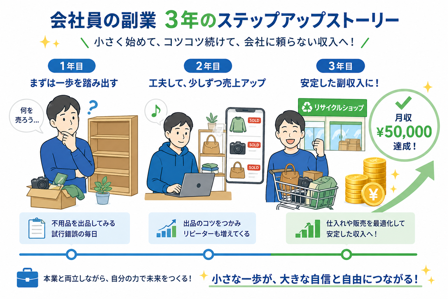 ただ、続ければ確実に上手くなります。相場を覚える、売れるジャンルを絞る、出品を効率化するという繰り返しで、少しずつ利益が出るようになります。